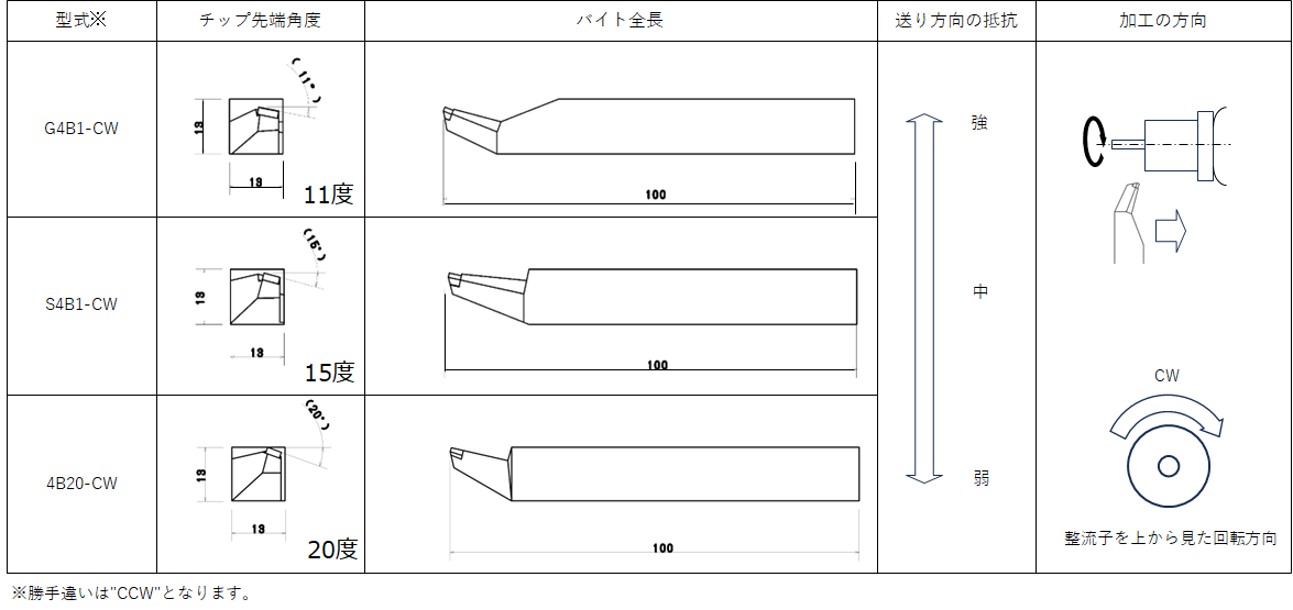 弊社で取り扱っている整流子切削バイトの代表的形式です。